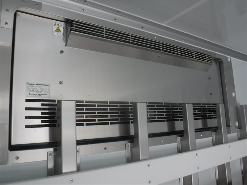 トランテックスボディ 左観音扉(H206cm W180cm) 床 キーストン ラッシングレール2段 菱重製冷凍機(低温設定 TDJS50J 直結式)<外気22℃の時、1時間で-10℃まで確認> トランテックス製床下格納ゲート(リモコン付) 後輪エアサス 6MT |
