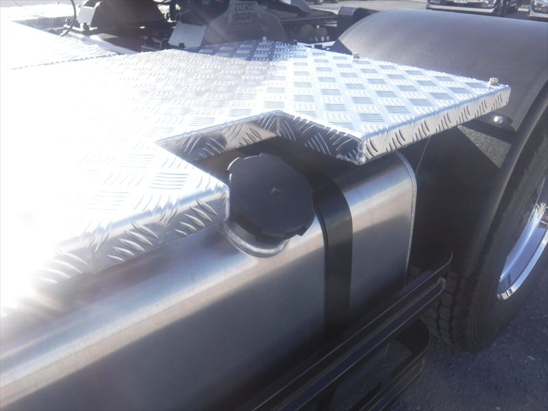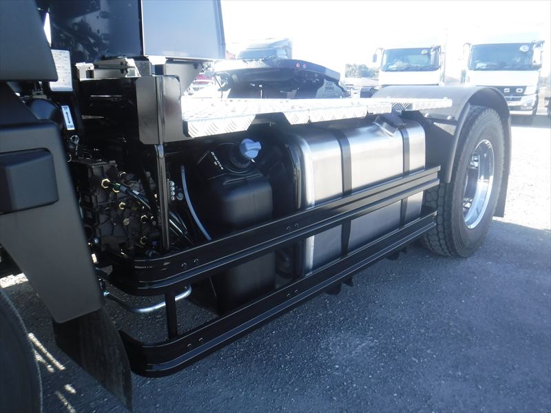 スーパーハイルーフ フロントメッキ アルミホイール カプラ:YOKOSHA SAT(シフトパイロット) リアエアサス 第五輪荷重:11,500kg 449馬力 |