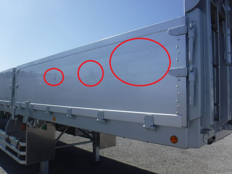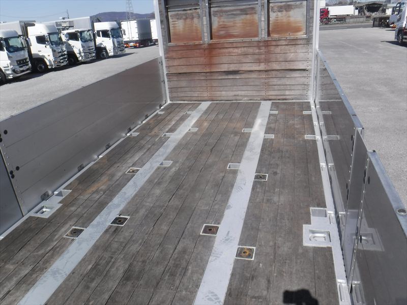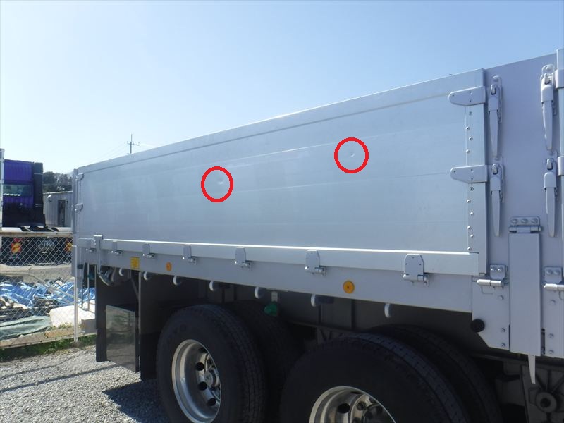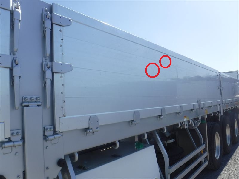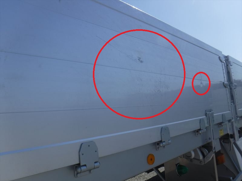 フルハーフボディ 7方開 木床 引出フック20対 丸フック3対 スタンション穴「外側20個/内側46個」 ★使用による「キズ・ヘコミ・サビ」有ります。★アルミアオリ「外側・内側 キズ・ヘコミ・汚れ」有ります。★ボディ床「補修跡・割れ 🔶要確認🔶」等有ります。★看板跡有ります。 ★タイヤ「11R22.5」1軸目・3軸目「スタッドレス」2軸目「ミックス」 |