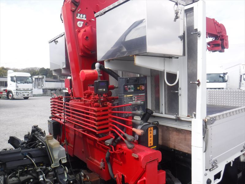 メーカー完成アルミブロック 木床 床フック「丸フック 4対」 前壁「アルミ縞板」 アオリ上部「アルミ縞板」 フロント「ステンレス物入 左右」 サイド「物入」 フレーム間「物入」 5MT リーフサス ETC フロントメッキ UNIC4段クレーン(2.6t ラジコン付) ★使用による「キズ・ヘコミ・サビ」有ります。★アオリ内・外側「キズ・ヘコミ・汚れ」有ります。★フロントガラス「点きず」有ります。★看板跡有ります。★キャブ室内「キズ・汚れ」有ります。 |