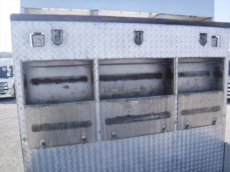 木床「床板30cm」 床フック「丸フック外側 26対 中央 6個」 スタンション穴(「外6対 長さ10cm 幅5.5cm」「中央15個 長さ8cm 幅8cm」) 前壁「アルミ縞板 物入」 オアリ7方開「☆前方アオリ長164cm 中央アオリ長494cm 後方アオリ長234cm☆」 7MT 後輪エアサス フロントメッキ 🔶ボディメーカー不明/年式不明🔶 ★使用による「キズ・ヘコミ・サビ」有ります。★ホディアオリ内・外側「キズ・ヘコミ」有ります。 ★フロントパネル「キズ・タッチペン跡」有ります。★看板跡「キャブ・アオリ左右・リア」有ります。★キャブ室内「キズ・汚れ」有ります。★メッキパーツ「キズ」有ります。 |