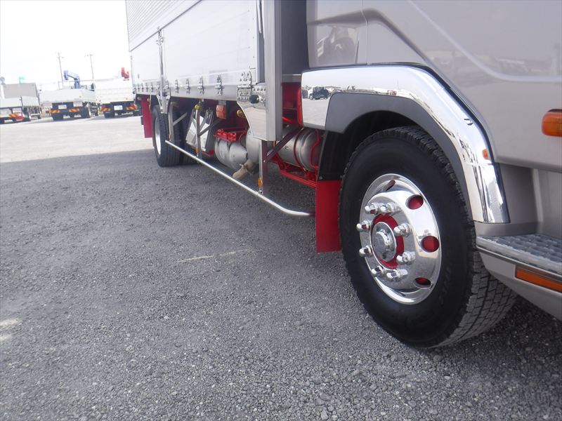 ヤマダ造りボディ 木床 床フック6対 ラッシングレール1段 フロントメッキ アルミホイール 6MT 270馬力 後輪エアサス ナンバー「字光式」 🔶ボティ載替え「年式不明」🔶🔶車検時「サイドバンパー」追加の可能性有ります。🔶 ★使用による「キズ・ヘコミ・サビ」有ります。★ボティ内「キズ・ヘコミ」有ります。★ウィング「左右 クリア剥がれ」有ります。★看板跡有ります。★キャブ室内「キズ・汚れ」有ります。 ★タイヤ「スタッドレス」です。 |